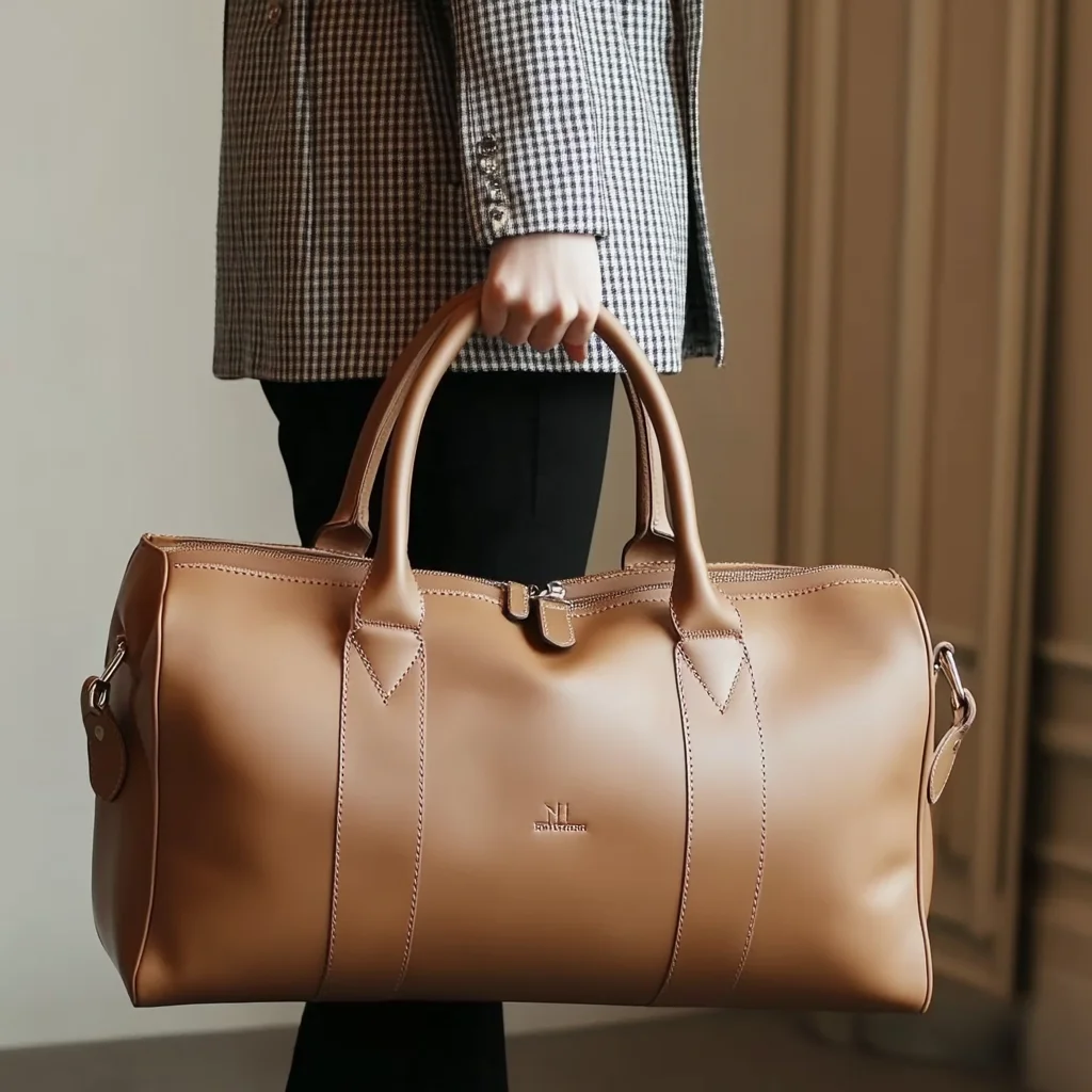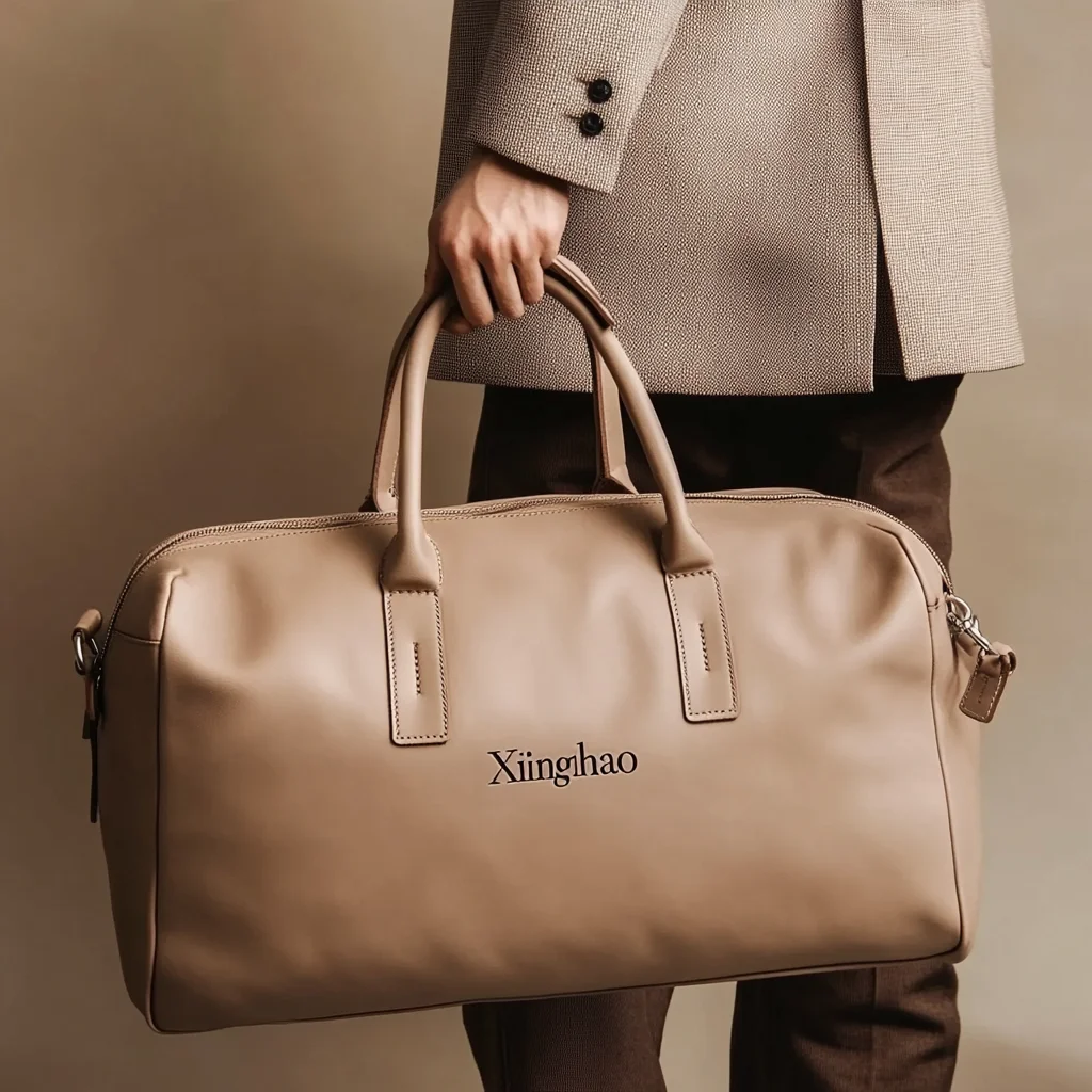 Factory Custom Genuine Leather Man Weekend Bag Business Style Woman Travel Overnight Duffle Bag for Trip